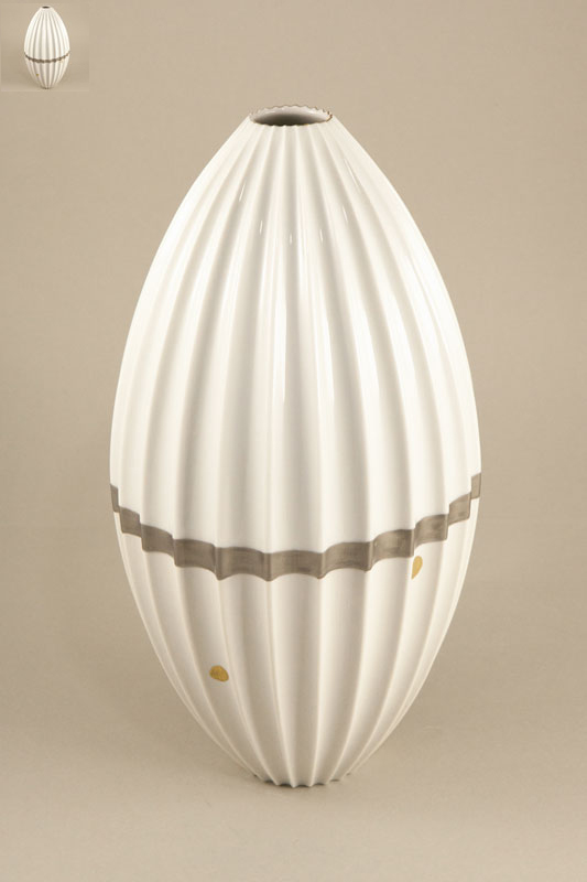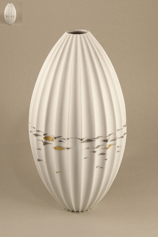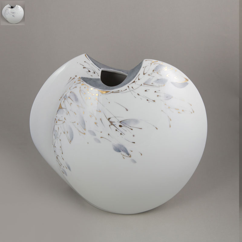 - Vase Diskus Relief mit Goldkragen 26x9x24 cm