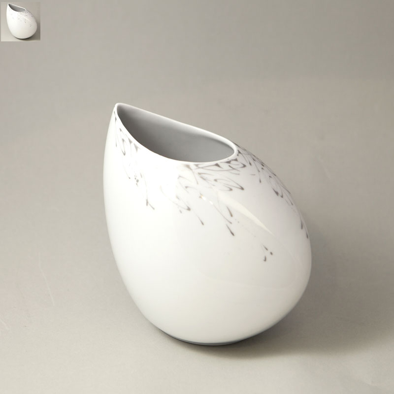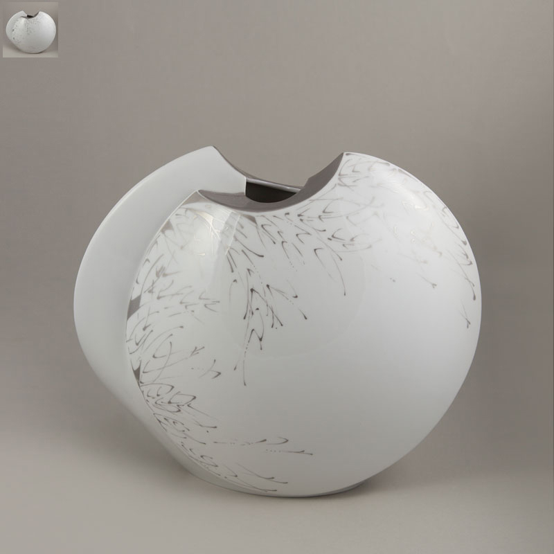 - Vase Diskus Silberkragen floral 26x9x24 cm