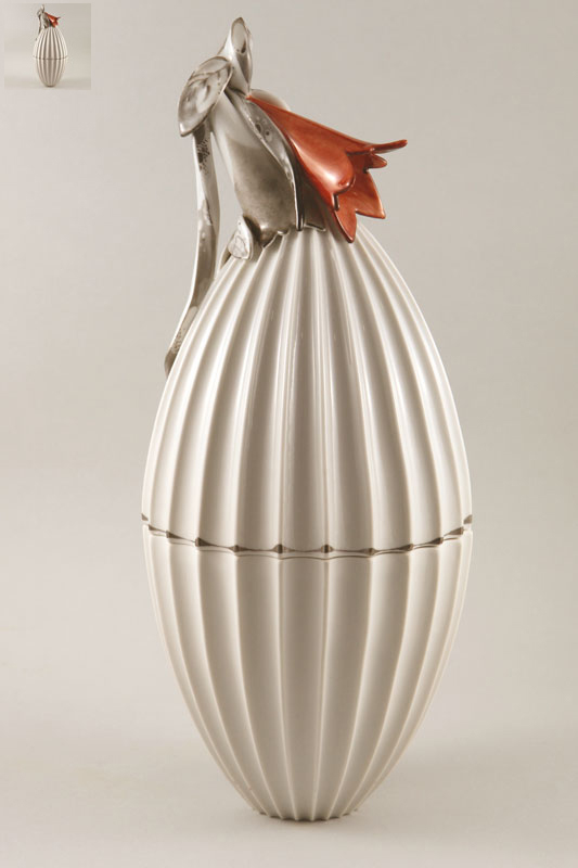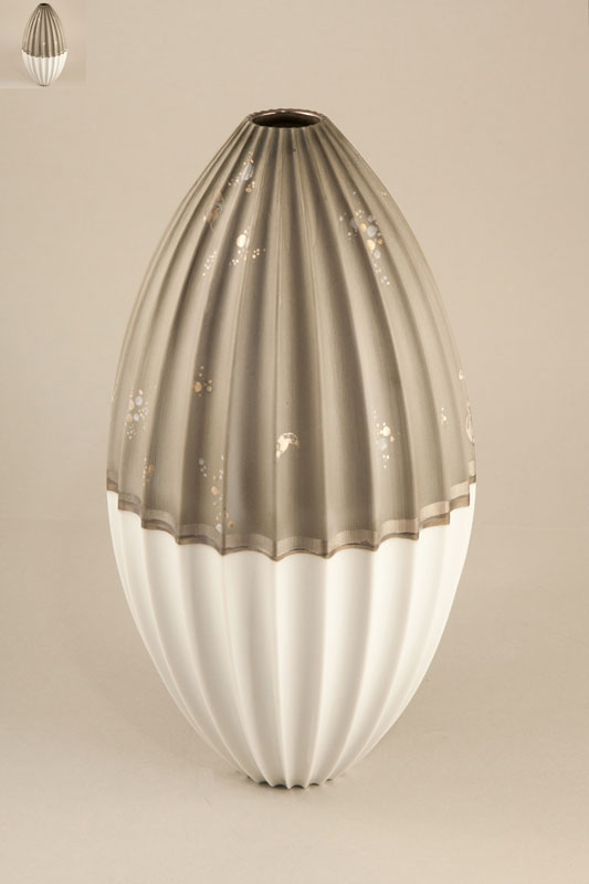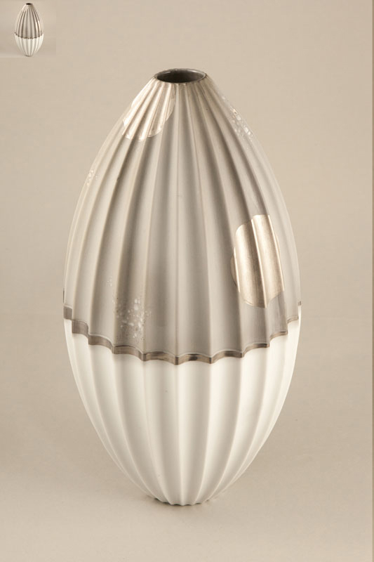 - Vase Diskus Relief mit Silberkragen 26x9x24 cm