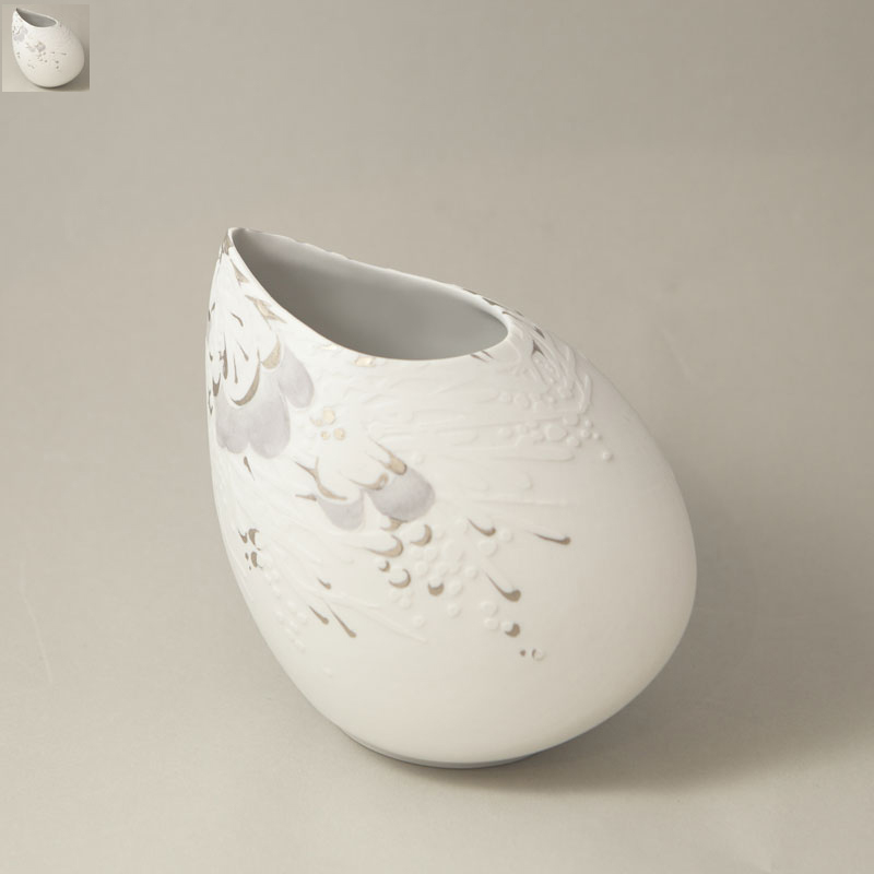 - Flügelvase Relief Weiß 24 cm x 8 cm x 13 cm hoch