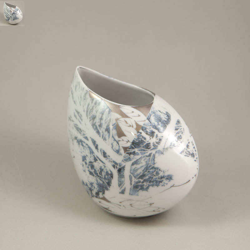 - Vase Helix Dekor silber-floral 14x12x11 cm